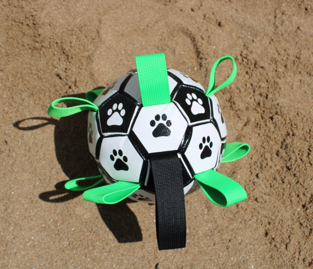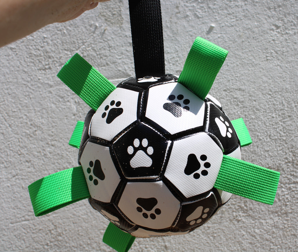 Made from strong rubber on the outside for all the fun. There are 9 handy grab tags making it suitable for all sized mouths with options to play: football or drag it around the field asking you to chase them. Interactive toys like this are an AMAZING way for you to have fun, bond, reward great behaviour and of course tire them out. You'll be super pleased to know this is another Alpha goodie that floats on water so it can come with you whatever the weather.